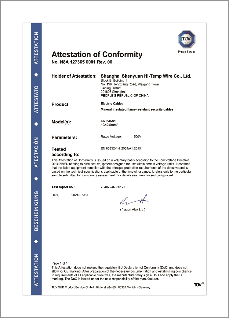 耐火線CE證書(shū)