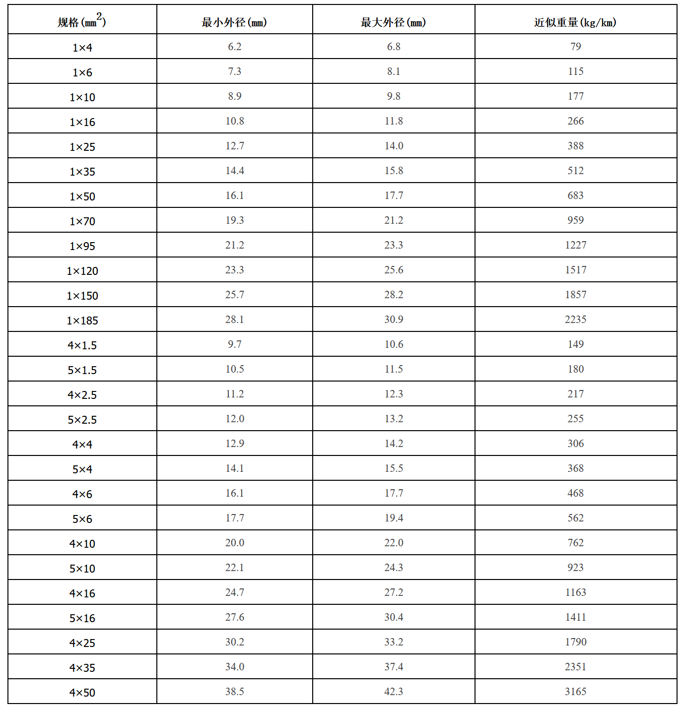 絕緣:截面積≤4mm2:高機械性能特殊聚合物,截面積≥6mm2:高機械性能PVC混合物