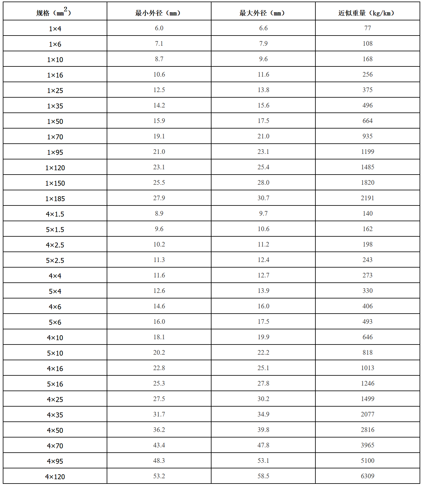 額定電壓:0.6/1kV